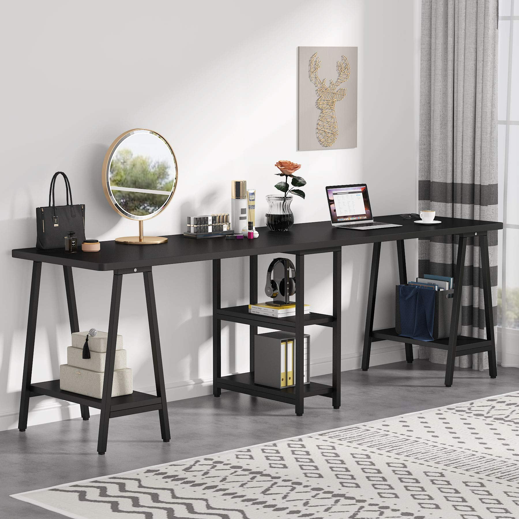 Double Desk, 94.5 inches Extra Long Computer Desk with ... from i5.walmartimages.com 55 inch computer desk gaming table racing style home office ergonomic black. Colored in a beautiful red shade, this piece brings a touch of flair to any room. Your price for this item is $ 389.99. Whether you prefer sleek modern secretaries or impressive executive desks, hooker furniture has the ideal office furniture solution for you. 30 inches, 36 inches, and 48 inches wide. Gather around the table and hear the family news, play a game, help with homework or set your stuff down. Find the best office desk to exceed all your needs. Save $34.00 (10%) sale starts at $305.99.